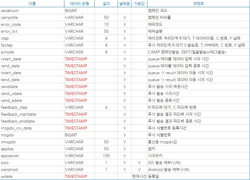 #### Result - AGPUSH\_RESULT\_YYYYMM 테이블